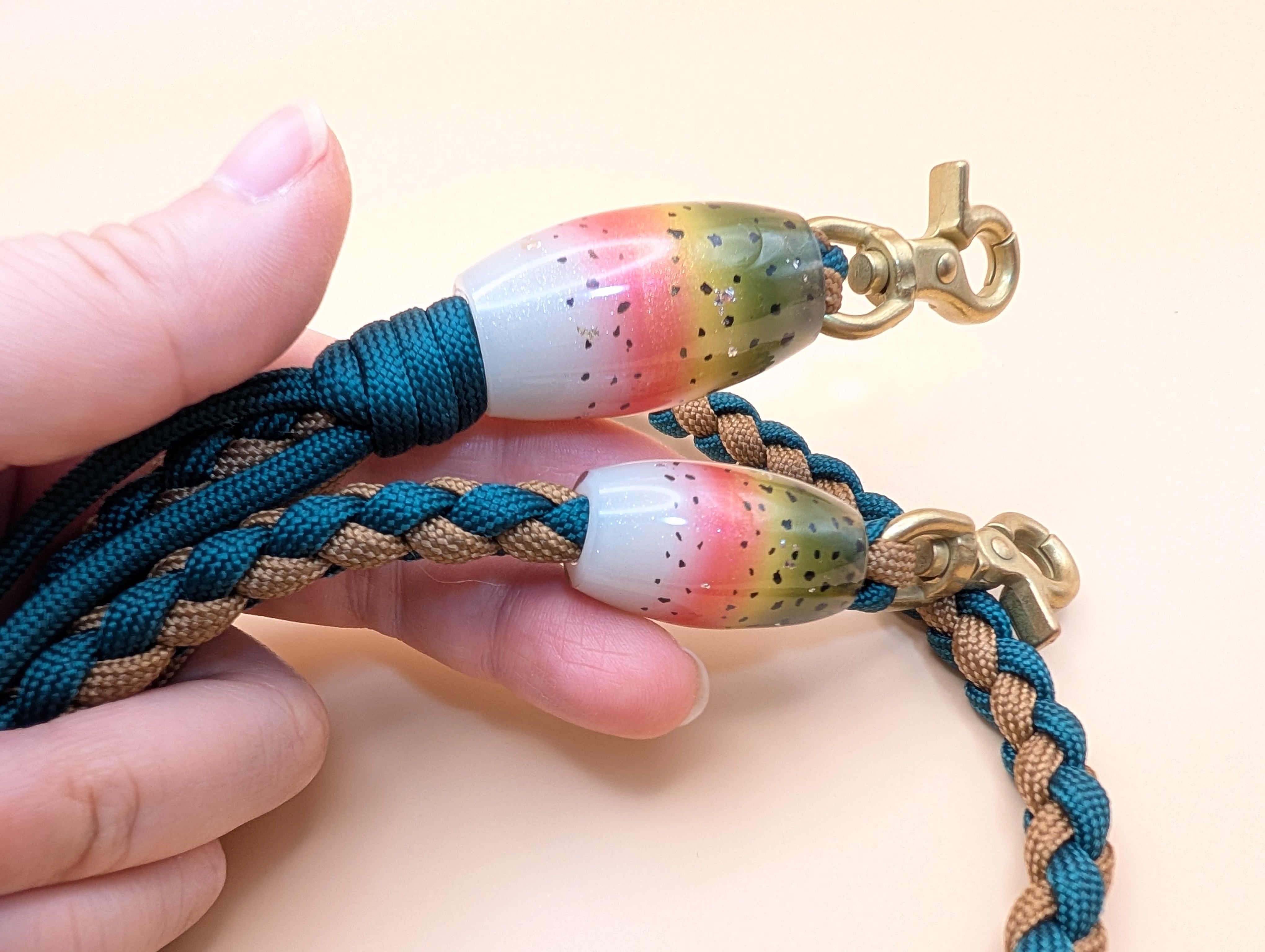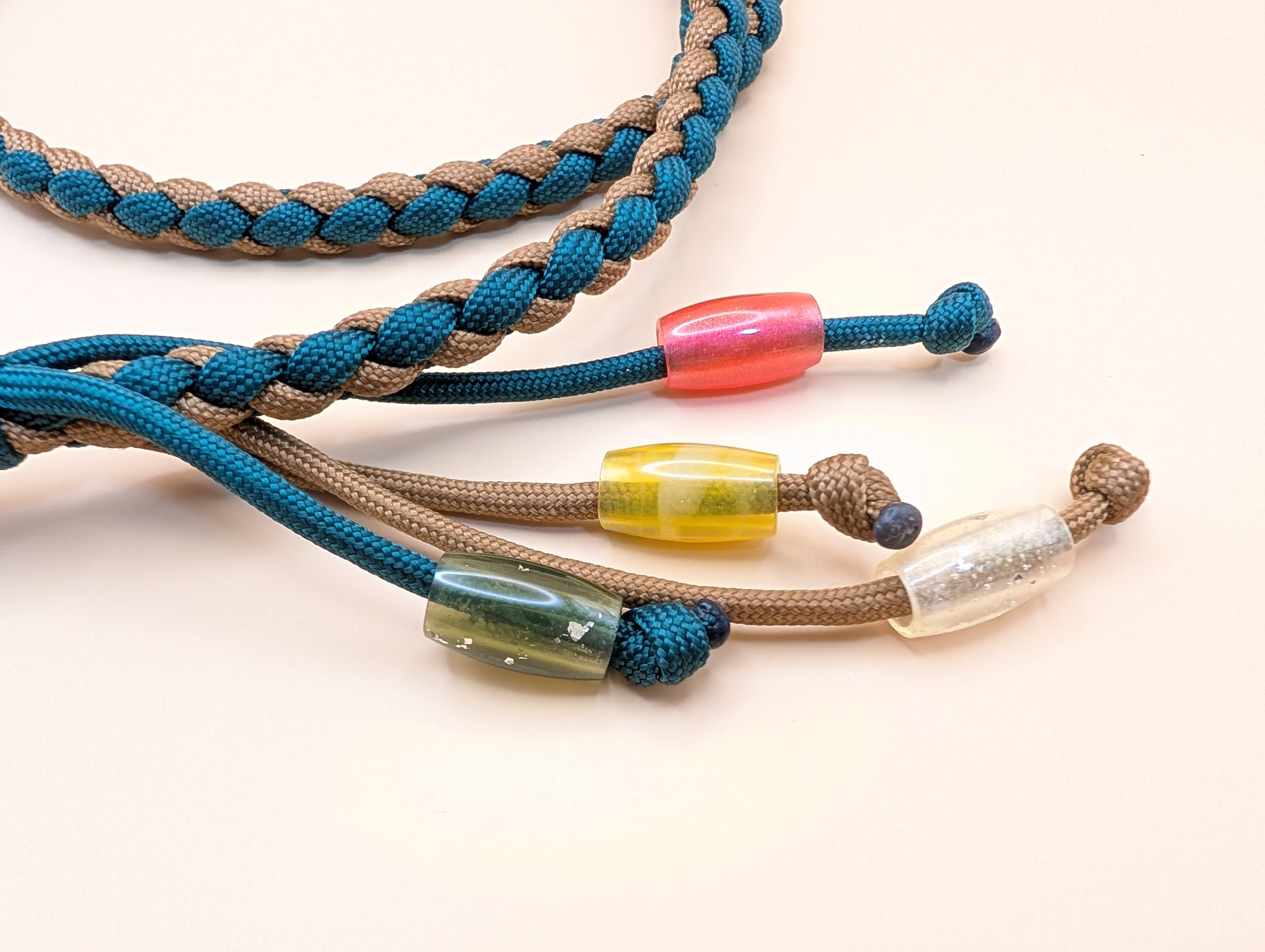 全長77cm パラコード紐(深緑×茶) レジン製蜻蛉玉 レバー付きナスカン金具(真鍮ゴールド色)