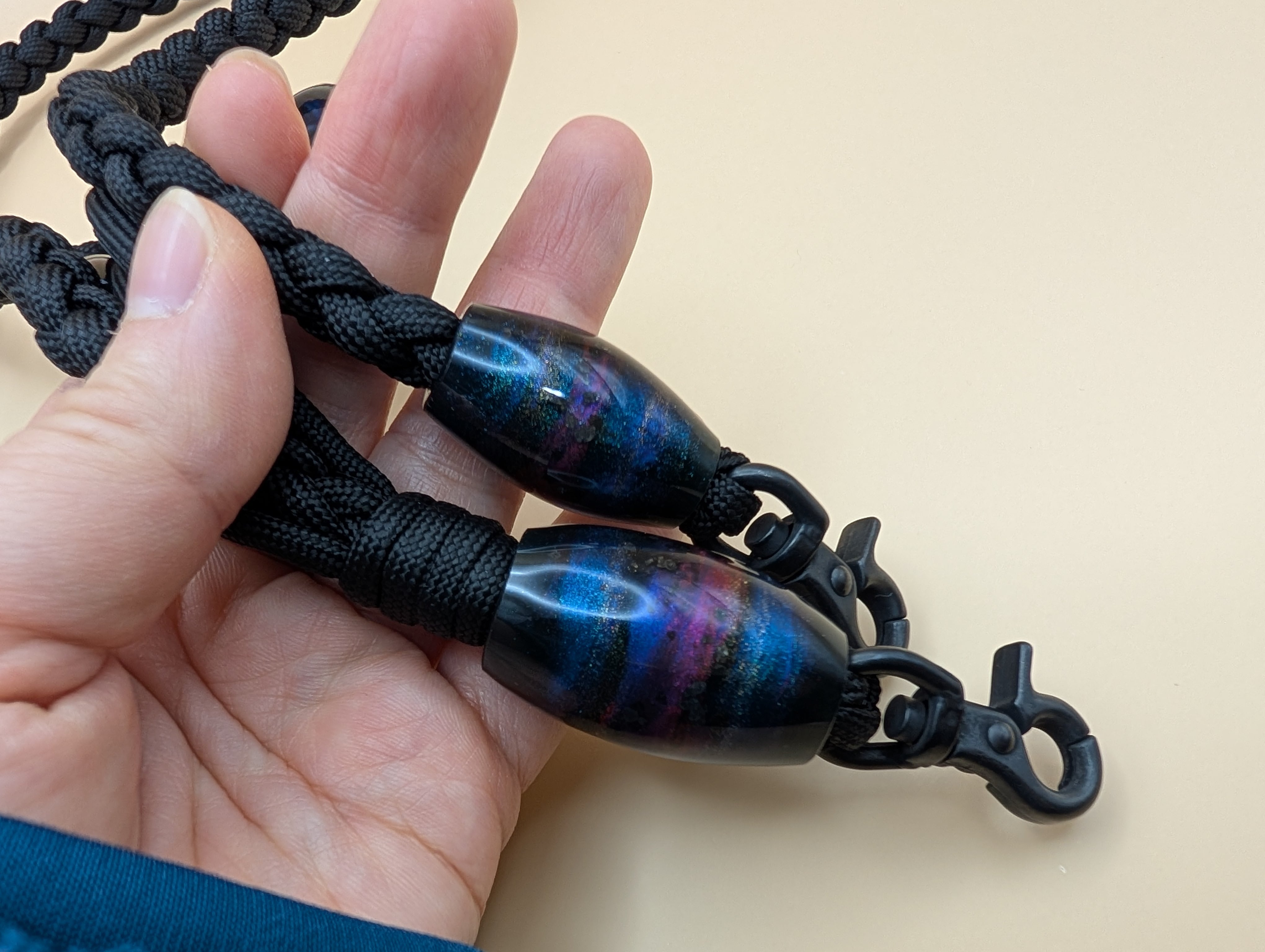 全長71cm パラコード紐(黒) レジン製蜻蛉玉 レバー付きナスカン金具(マットブラック)