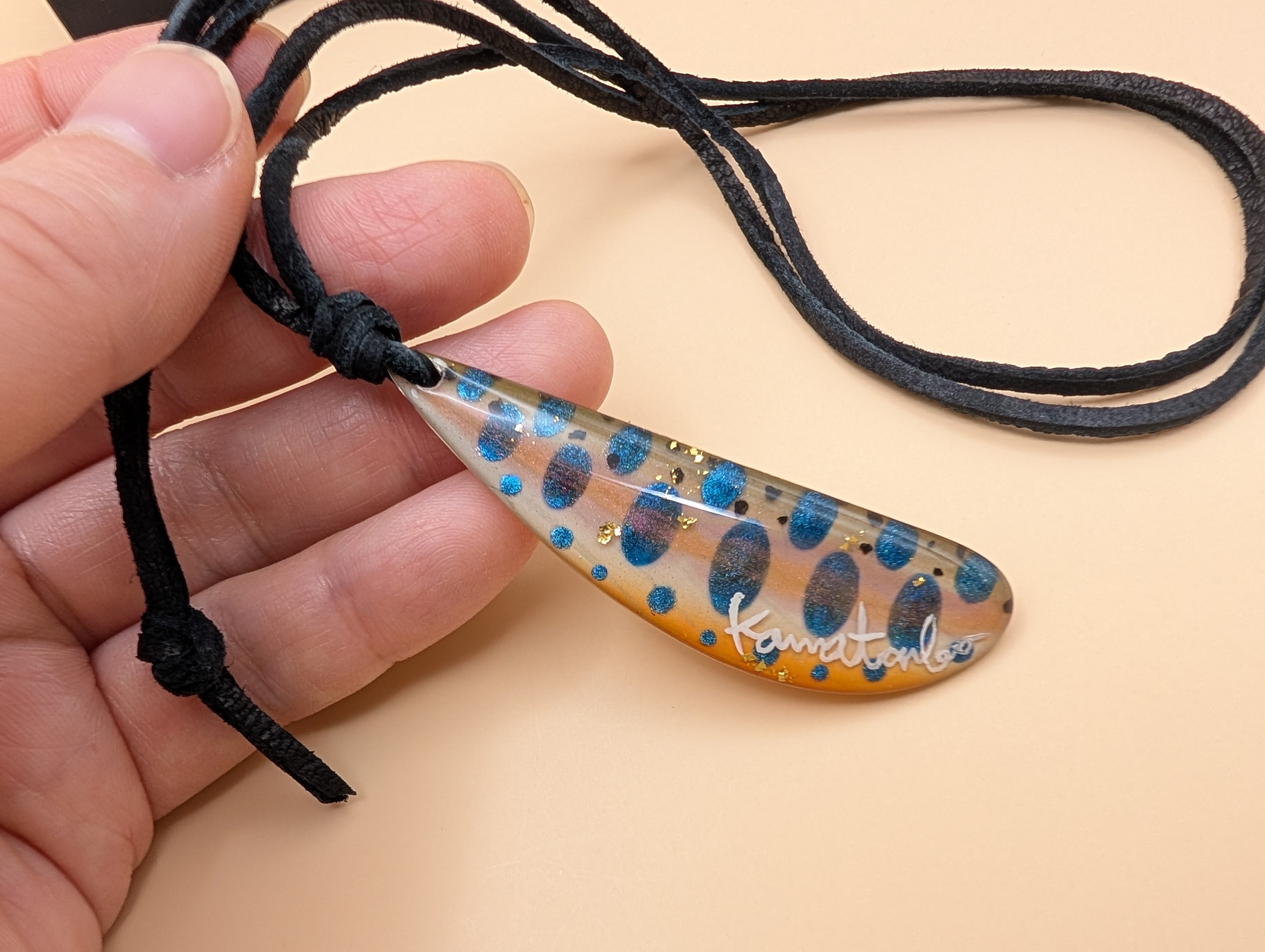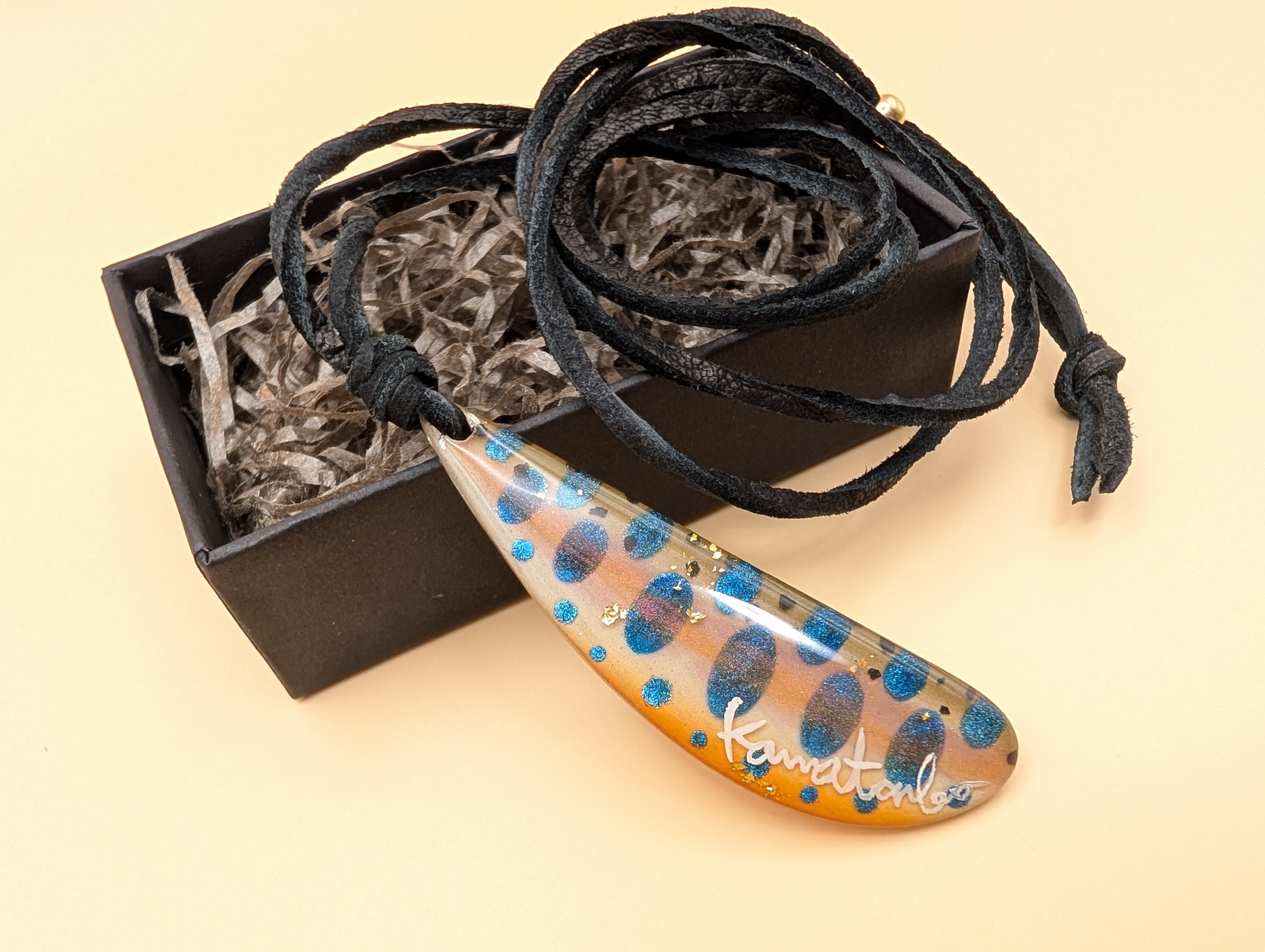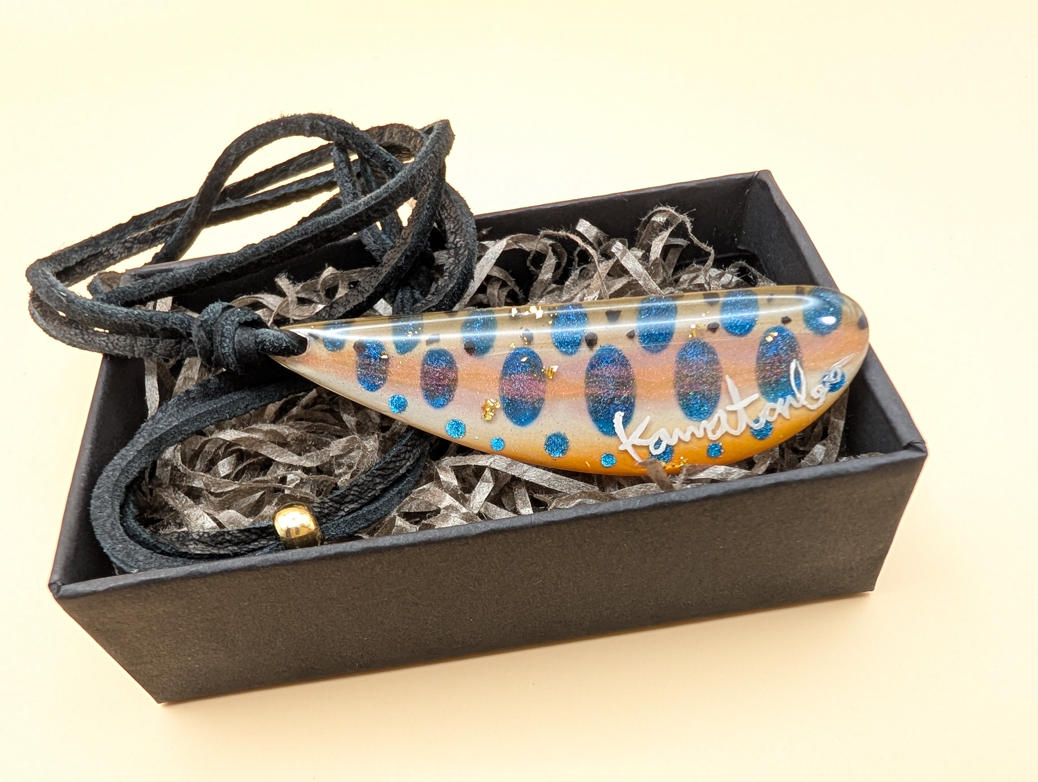 ヤマメ羽モチーフのネックレス(金箔) | Kawatonbo
