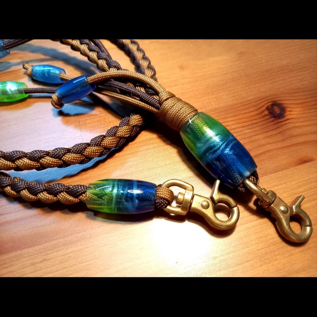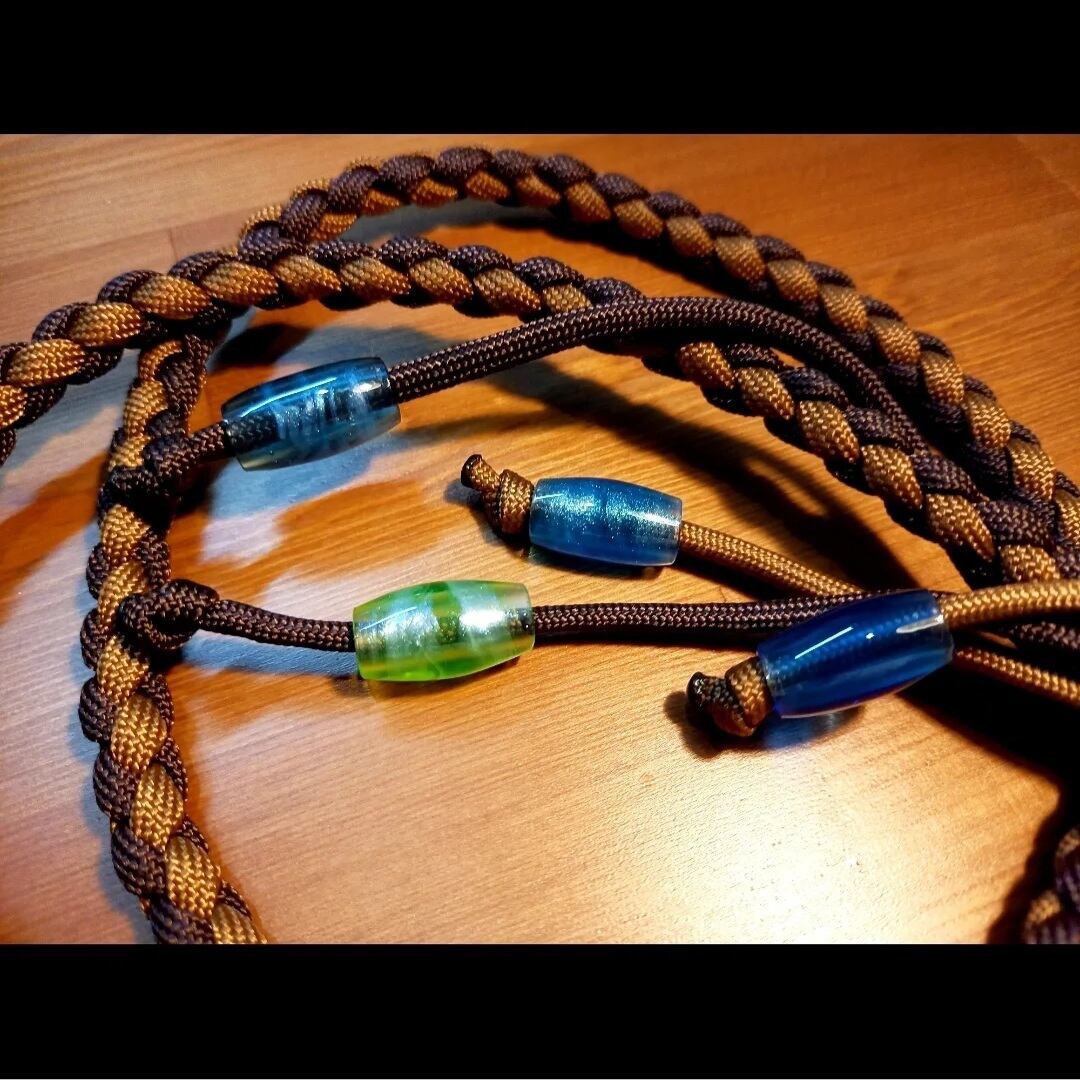 全長91cm パラコード紐(茶×濃茶) レジン製蜻蛉玉 レバー付きナスカン金具(真鍮アンティーク色)