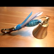 全長約19cm ベル直径5cm レザー紐(ターコイズ×薄紫) レジン製蜻蛉玉 カラビナ(アンティークゴールド)