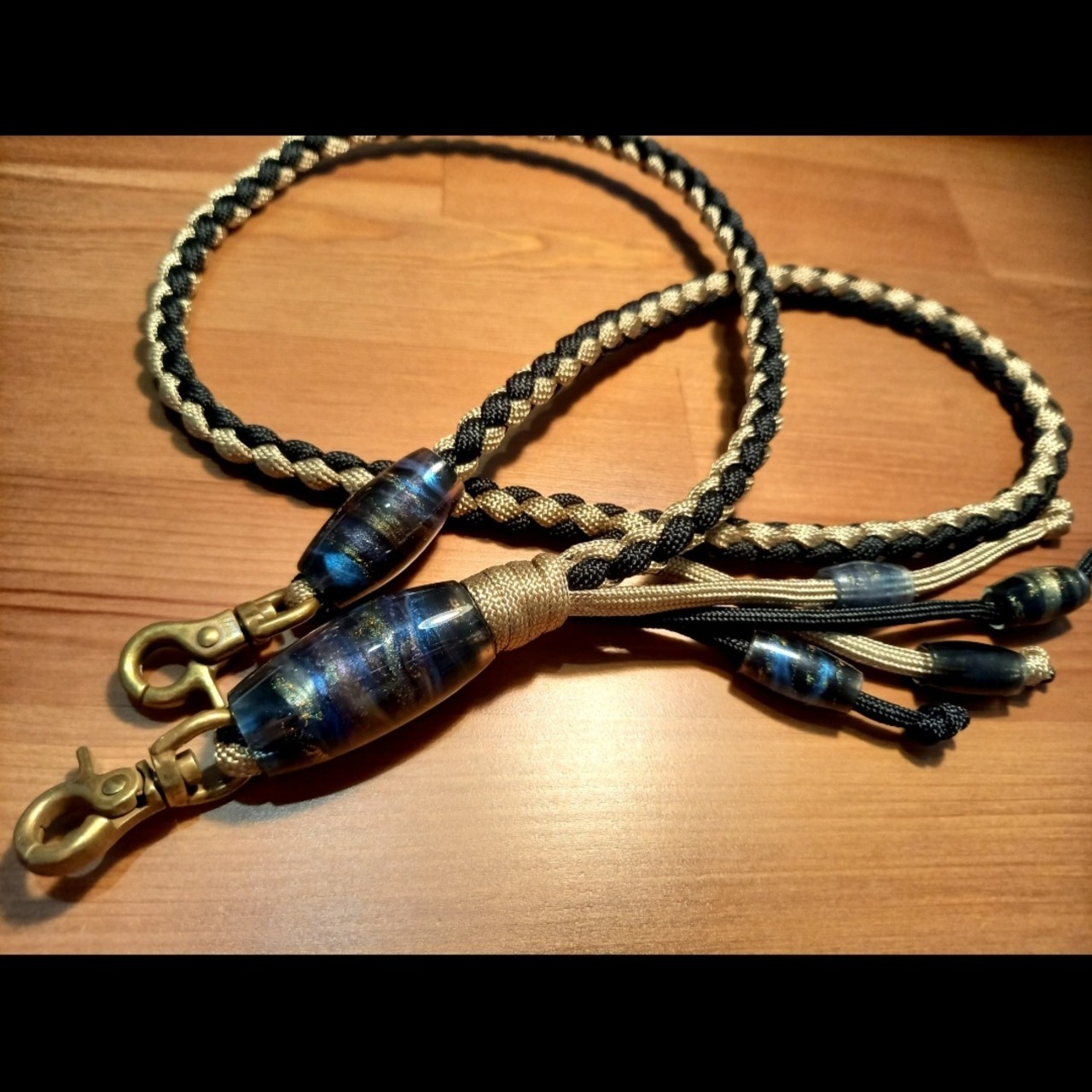 全長91cm パラコード紐(ゴールド×黒) レジン製蜻蛉玉 レバー付きナスカン金具(真鍮アンティーク色)