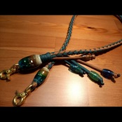 全長77cm パラコード紐(ライトブラウン×深緑) レジン製蜻蛉玉 レバー付きナスカン金具(真鍮ゴールド色)