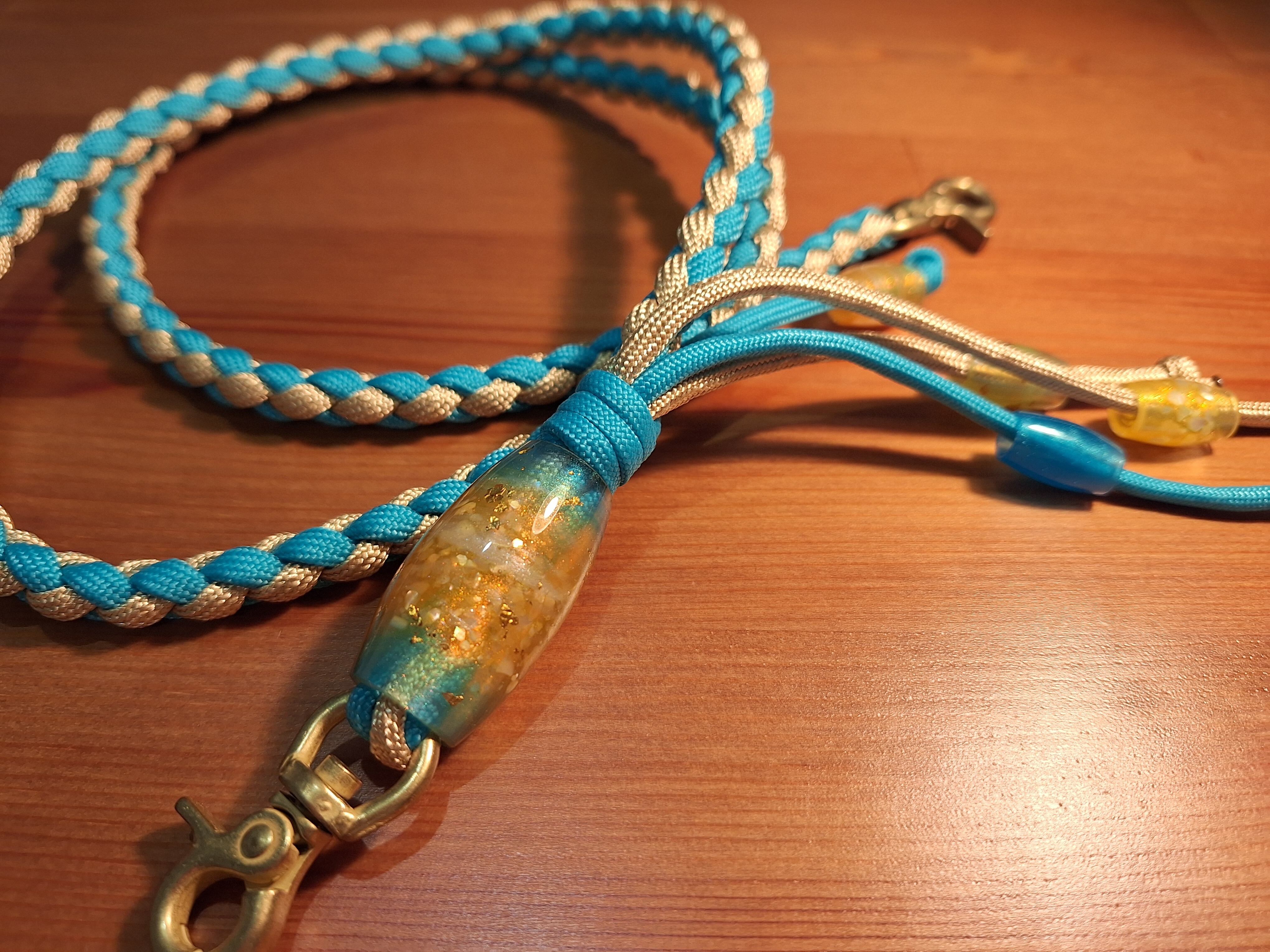 全長85cm パラコード紐(エメラルド×サテンゴールド) レジン製蜻蛉玉 レバー付きナスカン金具(真鍮ゴールド色)