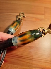 全長64cm レザー紐(黒) レジン製蜻蛉玉 レバー付きナスカン金具(真鍮アンティークゴールド色)